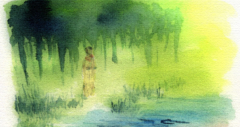 ほわーっとした色合いがとても綺麗な絵です。このまま帯にしたいくらい。(※作者は着物中毒)アキちゃんが描いたのも、きっとこういう綺麗な色合いの絵だったんじゃないかなと思います。すると、これってホテルの地下室には全然似合わなかったんじゃないかな。それとも、薄暗い部屋に、この絵だけ明るいというのが、良かったんでしょうか。この作品にとって、重要なキーアイテムである絵なので、どんな絵かなぁというのを、読む人にいろいろ想像してもらえると嬉しいです。 -
