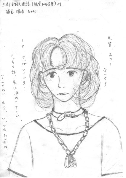 瑞希ちゃんが、なんでこんなTシャツ着てたのかというと、それは心理描写なんです。口では言えないキモチが滲み出てるんです。そういう、人物の本質が着ているTシャツに書いてあるというネタで、別作品の変な番外編を書いた後に、三都を書いたので、そのネタを引用してるんですけど、そんな回りくどい解説いらんか。右脳の中で同時進行でいろいろ創ってると、相互にネタ的なパロディが入ってたりして、暇やなあ自分て思います。 - ...ほか、蜂蜜様画の全28枚を見る