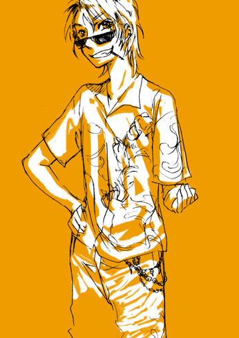 どう見てもチンピラくさい信太兄さんです。ボンボンくさいアキちゃんの対比キャラってことだと思います。出だし、信太は敵役なのでね。アキちゃんから見て信太は、良さの全然わかんない男なんだけど、「そんなんでもええんか亨!」みたいな話。作者は信太はけっこう純情で可愛いと思って書いてんのやけど、それ書けてる? 書けて、ない? 書けてないから人気ないのかな? でも蜂蜜さんにモテてるからいいや。信太ってキャラ的に「遊びの相手」なんだけど、それについてタイガー本人は実は切ないんだよ。愛に飢えてる虎やねん。そこんとこ、書けて……ない? ……orz -