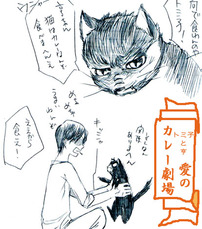 猫にカレーなんか食べさせたらあかんのです。玉ねぎ入ってるし、それに塩辛いしスパイス入ってるしで、命にも関わります。ということで、作者は乙女堂で先に読んでもらってた時に、メッて言われました。一応知ってて書いてたんですけど、知ってて書くほうが悪い子ぉどす! 反省しまして、その部分の改稿しました。それが今の状態なんどす。亨ちゃんは猫を殺そうとしてカレー食わせた訳ではないです。知らずにやってるんです。むちゃくちゃですが……いい子なんです。けど、皆さんは絶対に真似しないでね。 -