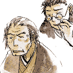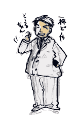飲み会のお誘いのレターパッドに印刷して使わせてもらいたいくらいイケてる画商西森さんです!! 西森さんは私が過去の人生をふりかえり、ウマいもん食わせてくれたオジサンたちを集大成して作ったような架空の人物なのですが、全員混ぜるとこういう感じのような気がします。西森さんは独身でひとりぐらしです。親子代々の画商ですが、両親は鬼籍に入り、今は実家を売っぱらって、東山あたりのマンションに住んでいるような気がします。(大ざっぱなようでいて変に細かい設定) -