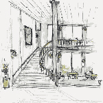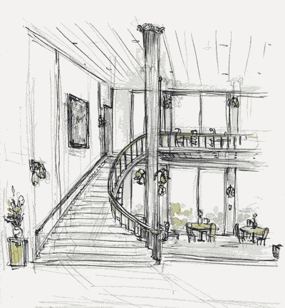 ホテル・ウェディングのパンフレットに載っていそうな、ラグジュアリー感たっぷりのロビーでございます! フェニックス藤堂はどうも、元々はホテル・ウェディングの担当者だったのではないかとい気が作者にはします。長年、ご両家の皆々様に深くご満足いただける披露宴をプロデュースしてきたオジサンではないかと。きっとこのコロニアル風階段もなんかのネタに使うんでしょうが、藤堂さん本人はけっこう照れ屋さんぽいのに、他人のネタは思いつくんやな……と、見ていてちょっと恥ずかしいです。 -