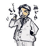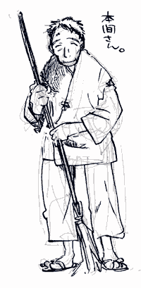 まさか本間さんを絵に描いてもらえるとは夢にも思っていなかったです。京都編にもチョイ役で出てきた、徹頭徹尾チョイ役の人です。皆さん完全にお忘れでしょうが、しかしこの人も、実はカメラマンで、神霊を写真に撮れるという秘技を持っているのです……が! アキちゃんちの実家で家族写真を撮るだけという、能力無駄に使っているタイプの人です。いや、きっと、オカンの配下で何かスゴイ仕事をしているんでしょうが、普段は嵐山の家のお掃除とか、庭の手入れとか、雨樋の修理などをしてくれています。 -