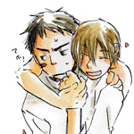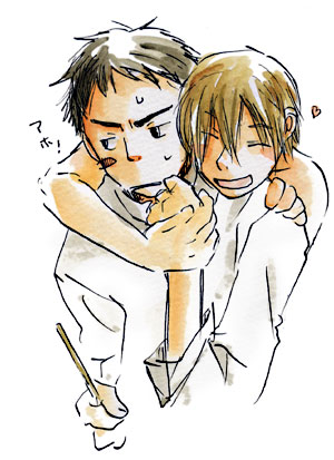 ラブラブっぽい絵だ! 実はめったにないラブラブっぽい絵です! BLなのに、うちのLはラブじゃないという噂がたくさん……! アキちゃん、いちゃいちゃしてもらって実は嬉しいんですが、素直じゃないので嬉しがれないです。アホになればいいのになれません! お前さえアホになれれば三都幻妖夜話ももっとツブシの効く話になるのに! ……と、キャラのせいにしておきますが作者のせいですorz んでも、やっぱり仲良くしてはる絵は可愛いのぅ、と思います。 -
